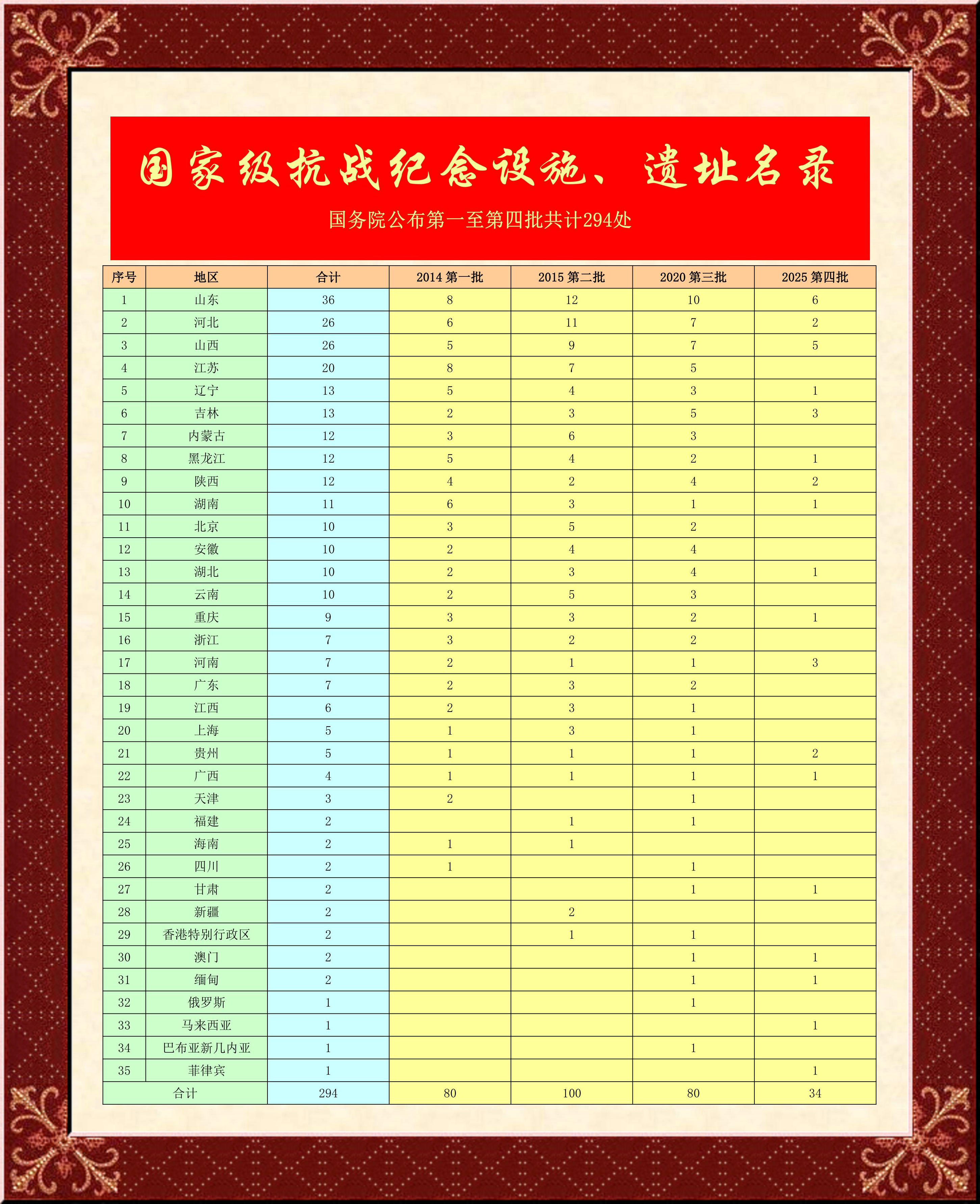 国务院关于公布第四批国家级抗战纪念设施、遗址名录的通知 发文字号: 国发〔2025〕12号 发布日期: 2025年08月29日