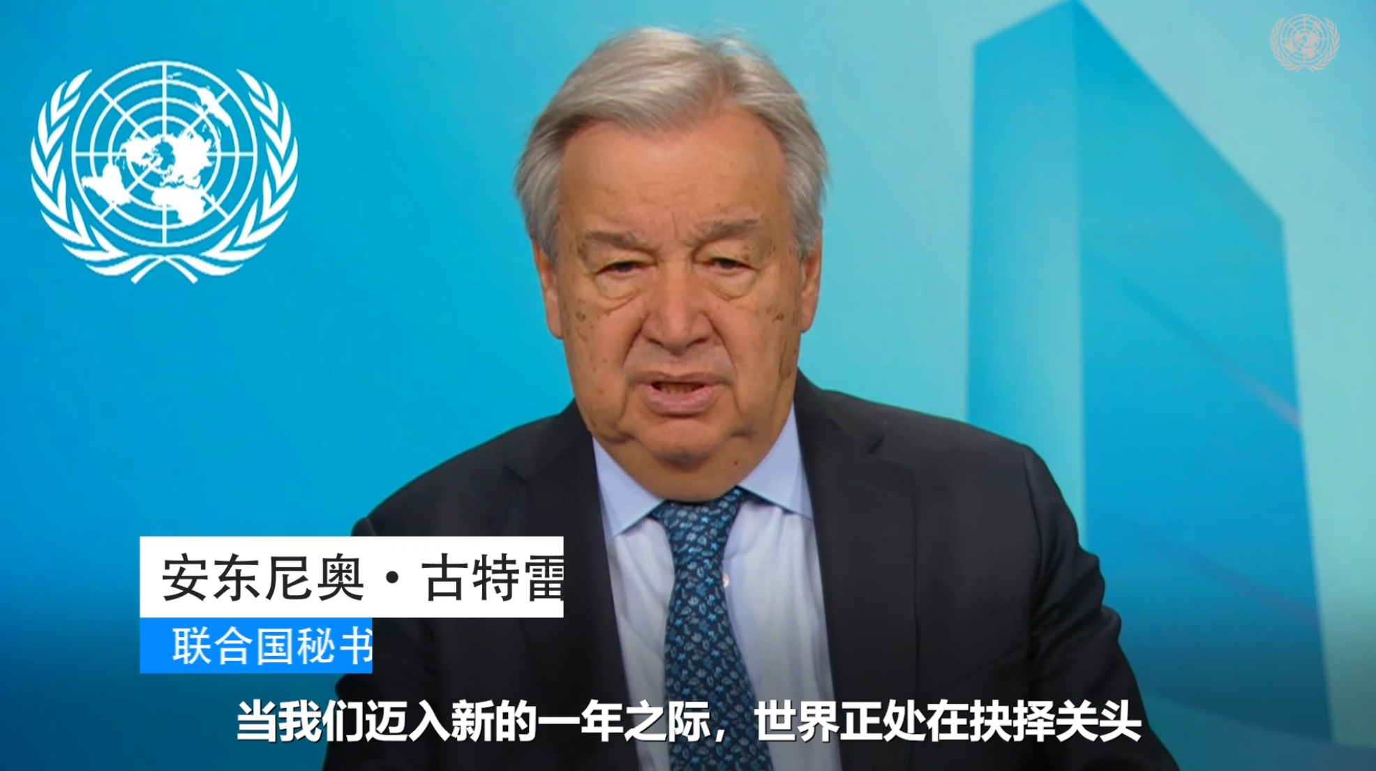 古特雷斯说,新的一年到来之际,世界正处在抉择关头。混乱与不确定性笼罩全球。撕裂、暴力、气候危机、全面违反国际法的行径不断发生。将人类大家庭凝聚在一起的基本原则出现倒退。