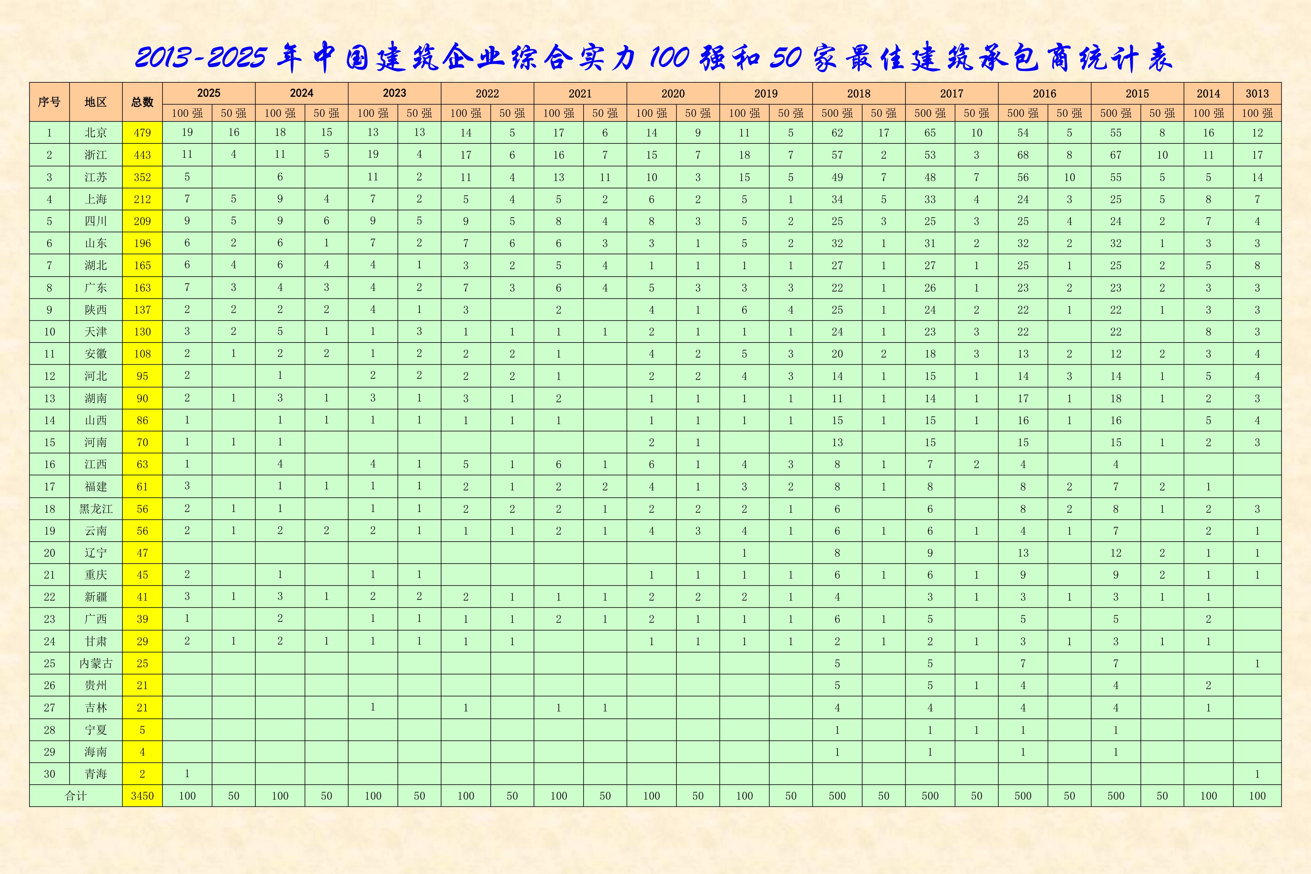 此次2025年中国建筑业综合实力100强榜单的发布,不仅是对过去一年建筑企业发展成果的总结与肯定,更为行业未来发展指明了方向。在国家持续推进基础设施建设、新型城镇化进程以及“一带一路”倡议的大背景下,建筑业迎来了新的发展机遇与挑战。上榜企业将继续发挥引领示范作用,带动全行业不断提升综合实力,为我国经济社会发展和城市建设贡献更多力量。同时,榜单也为上下游企业、投资者以及行业相关人士提供了重要参考,助力各方把握行业动态,实现资源的优化配置与高效利用。