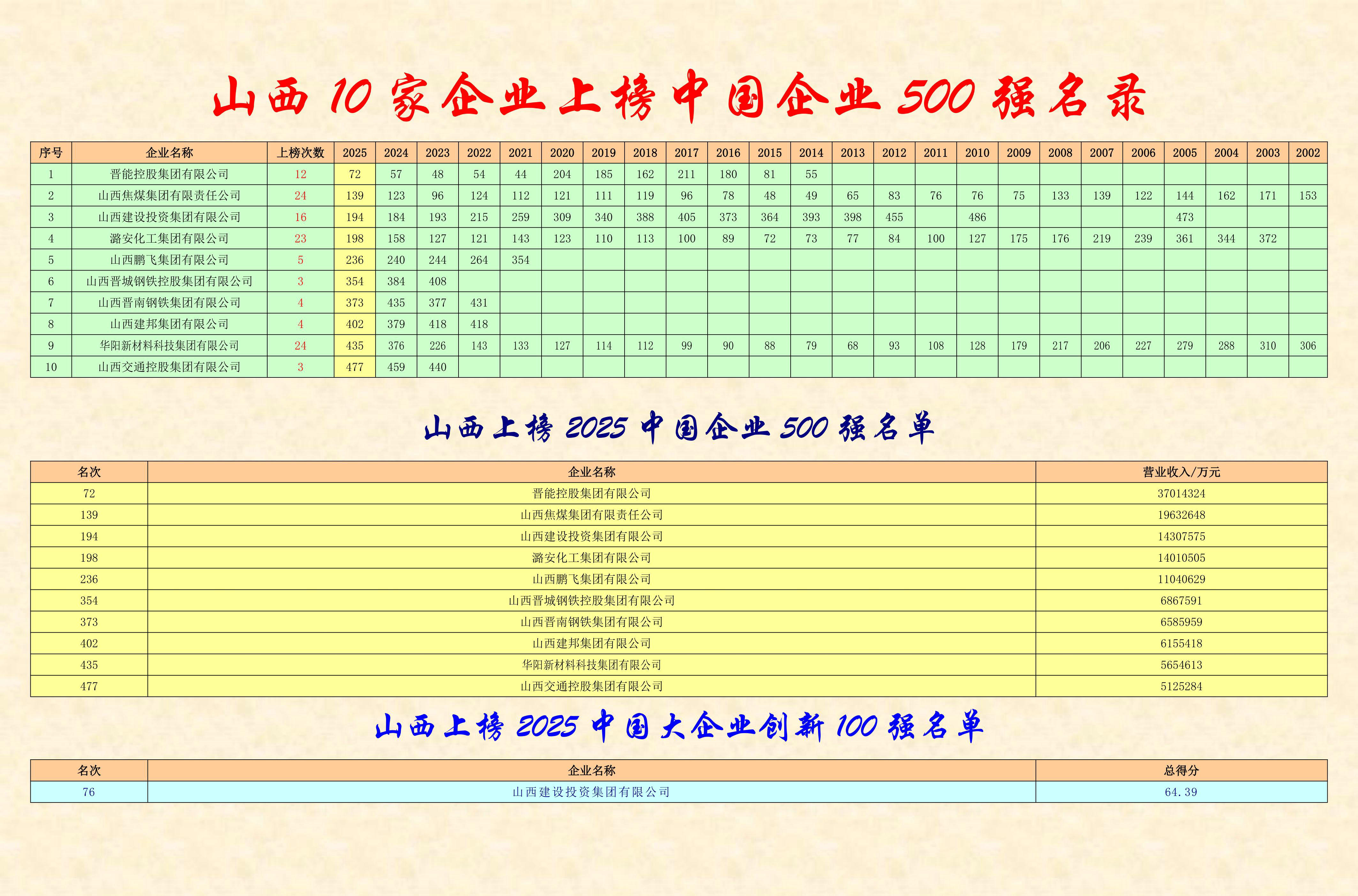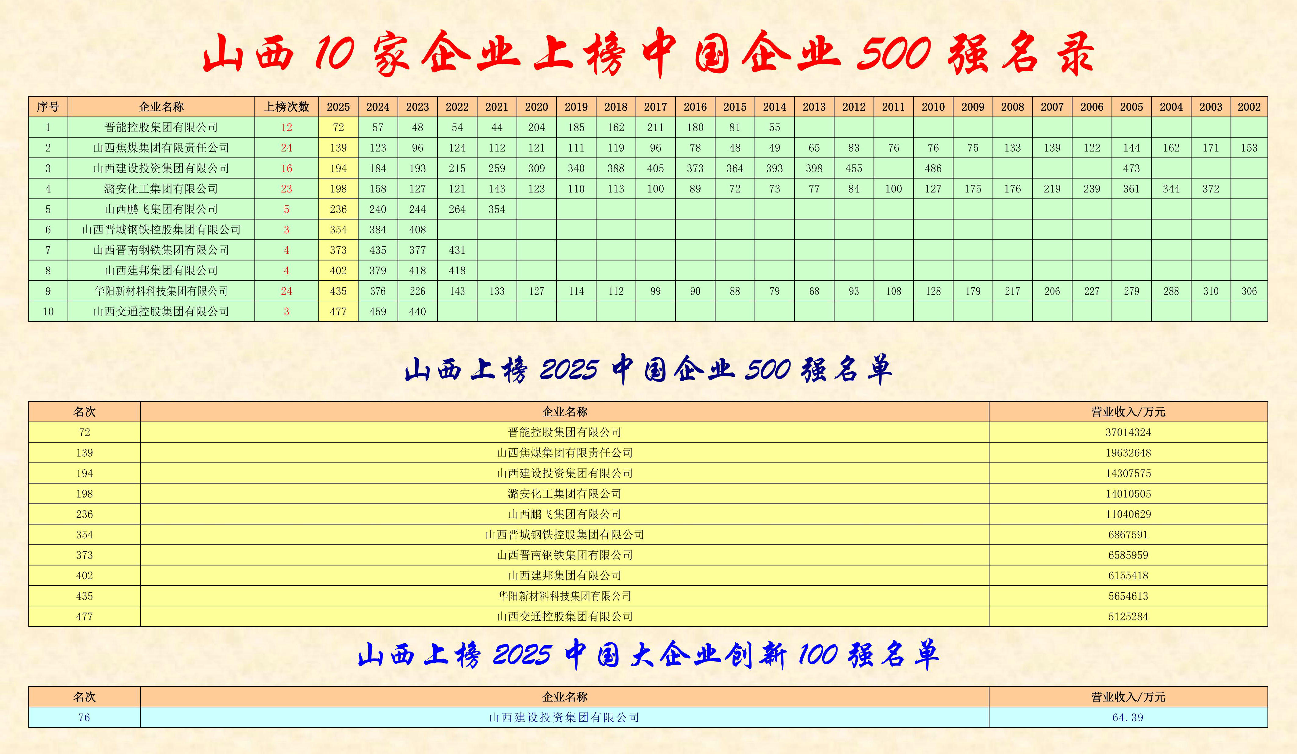 序号 企业名称 上榜次数 2025 2024 2023 2022 2021 2020 2019 2018 2017 2016 2015 2014 2013 2012 2011 2010 2009 2008 2007 2006 2005 2004 2003 2002