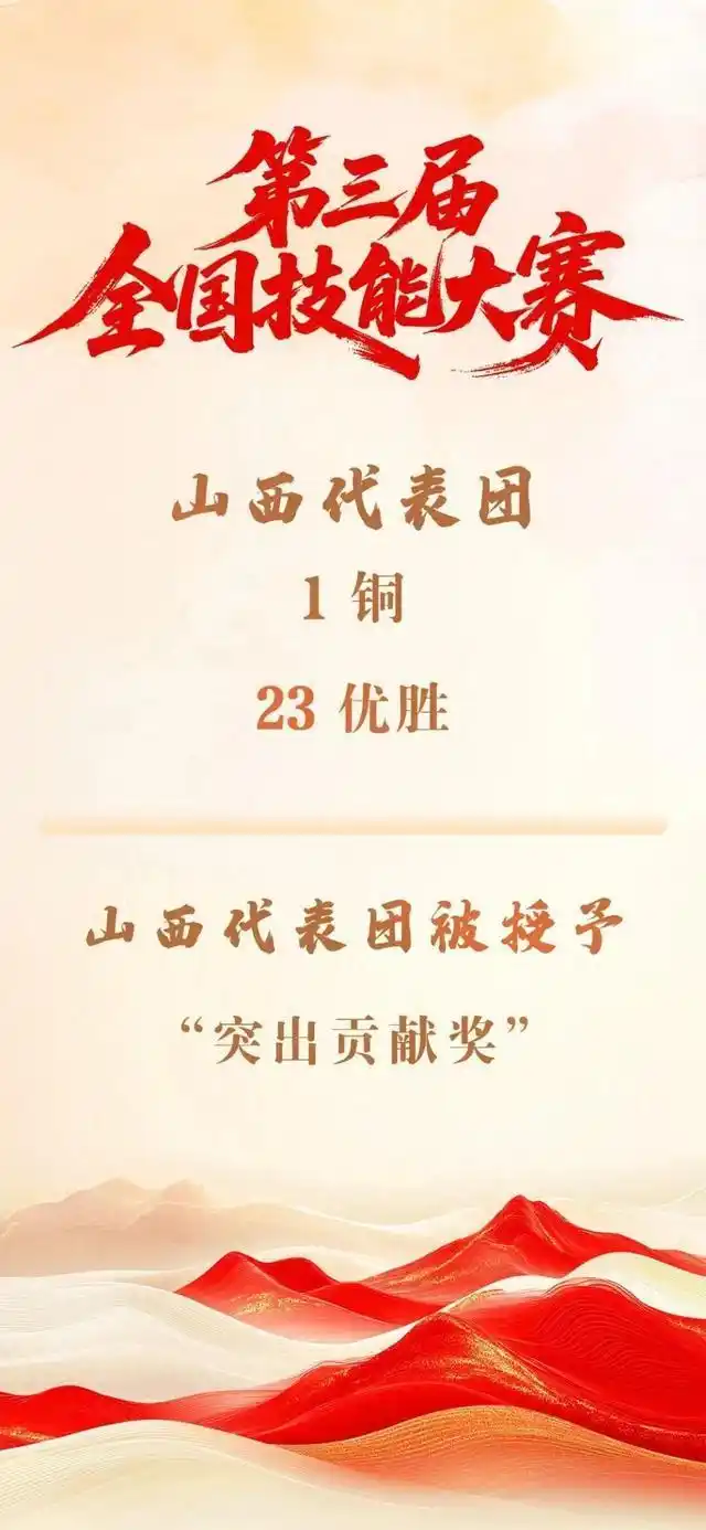 9月23日,以“技能照亮前程”为主题的第三届全国技能大赛在河南郑州落下帷幕。经过激烈角逐,山西代表团获得1个铜奖、23个优胜奖。