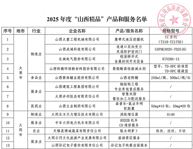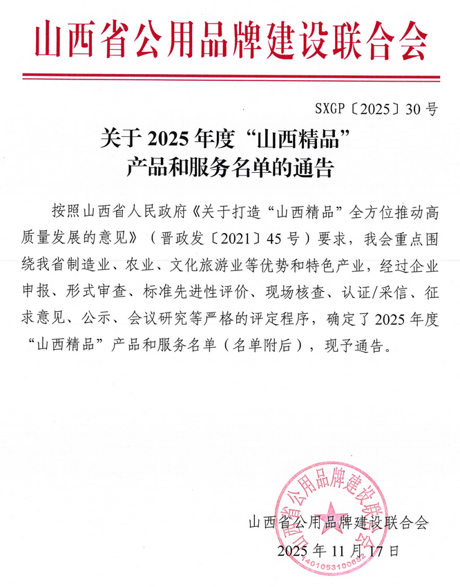 【行业动态】关于2025年度“山西精品” 产品和服务名单的通告