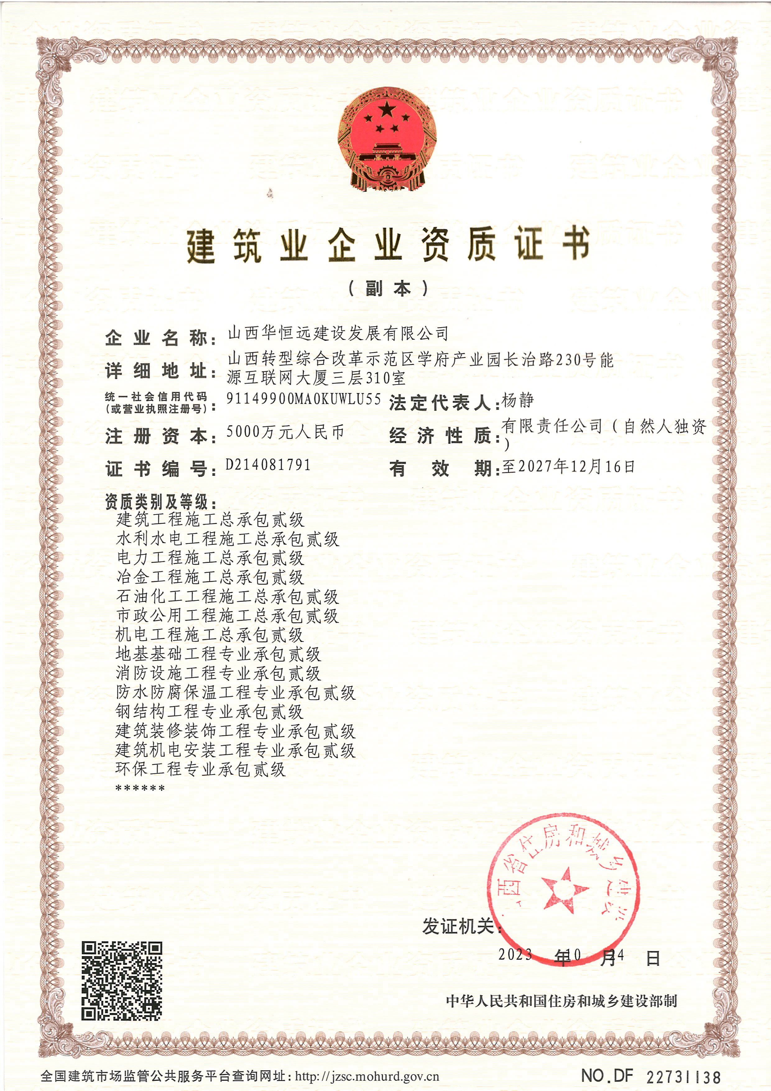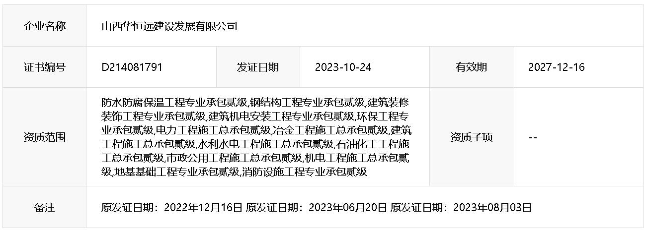 祝贺华恒远晋升水利水电施工总承包二级资质