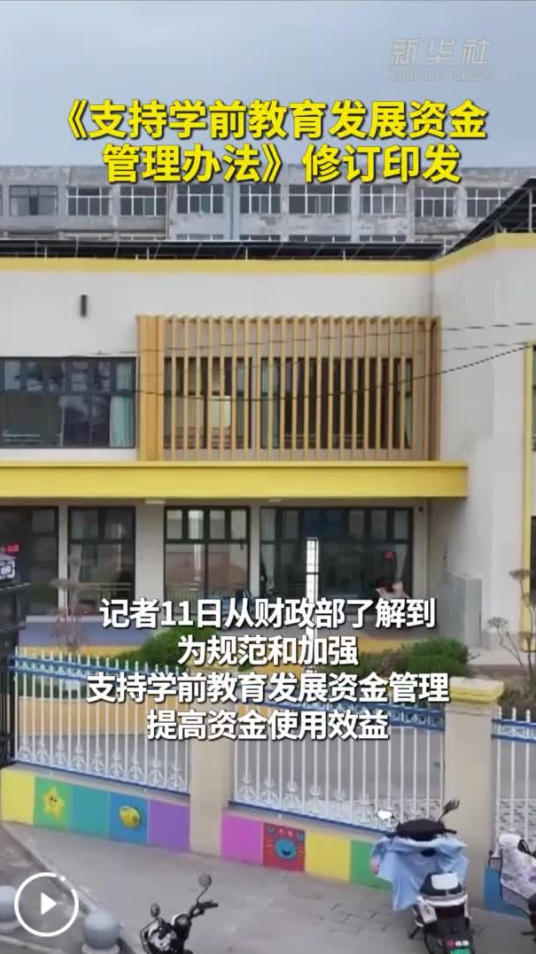 新华社北京8月11日电(记者申铖)记者11日从财政部了解到,为规范和加强支持学前教育发展资金管理,提高资金使用效益,财政部、教育部修订印发了《支持学前教育发展资金管理办法》。