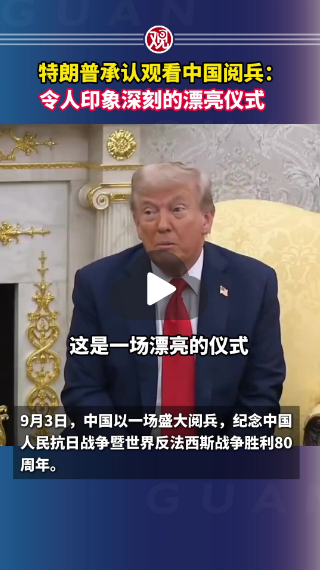 “我认为这是一个美丽的仪式,我认为它非常、非常令人印象深刻(very, very impressive),”特朗普谈及九三大阅兵时称,他“理解”中国举行此次阅兵式的原因。