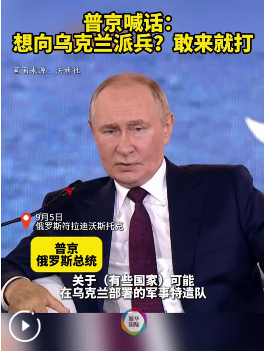 新华社符拉迪沃斯托克9月5日电(记者黄河 赵冰)俄罗斯总统普京5日表示,北约部队如果出现在乌克兰,将成为俄罗斯军队的合法打击目标。