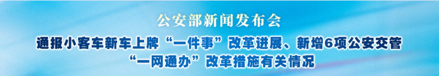 [ 主持人 ] 今天发布会的主要内容是,聚焦公安交管“高效办成一件事”,通报小客车新车上牌“一件事”改革进展、新增6项公安交管“一网通办”改革措施有关情况。为此,我们非常荣幸地邀请到公安部交通管理局局长王强先生、副局长齐耀忠先生,重庆市公安局交通管理总队副总队长徐佳先生,请他们向大家介绍有关情况,并回答提问。 [ 2025-10-14 10:15:05 ]