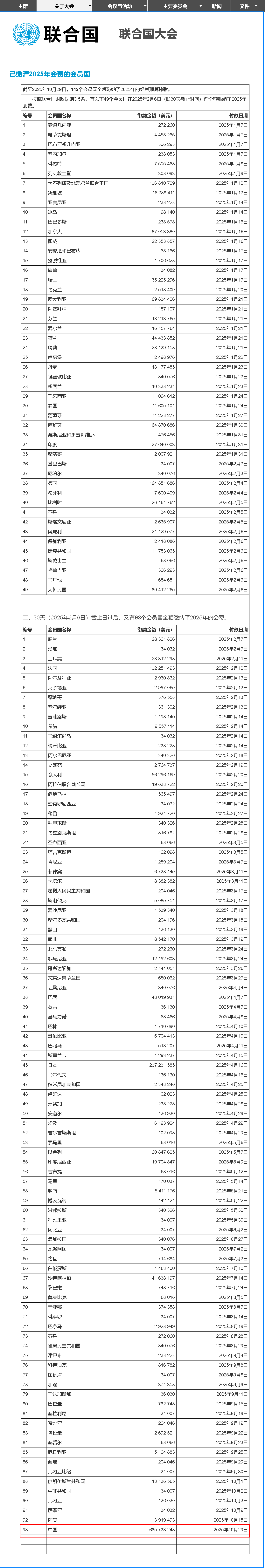 中方代表此前便指出,会费大国长期欠费,是导致联合国流动性危机的主要原因。
