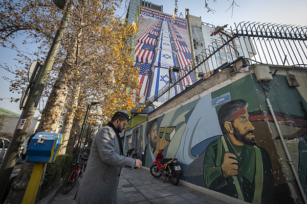2026年1月6日,德黑兰,一块反美反以色列的广告牌。广告牌上描绘了美以士兵棺材的象征性图像,旁边是伊朗议会议长阿里·拉里贾尼的声明,写着“小心你们的士兵”。 视觉中国