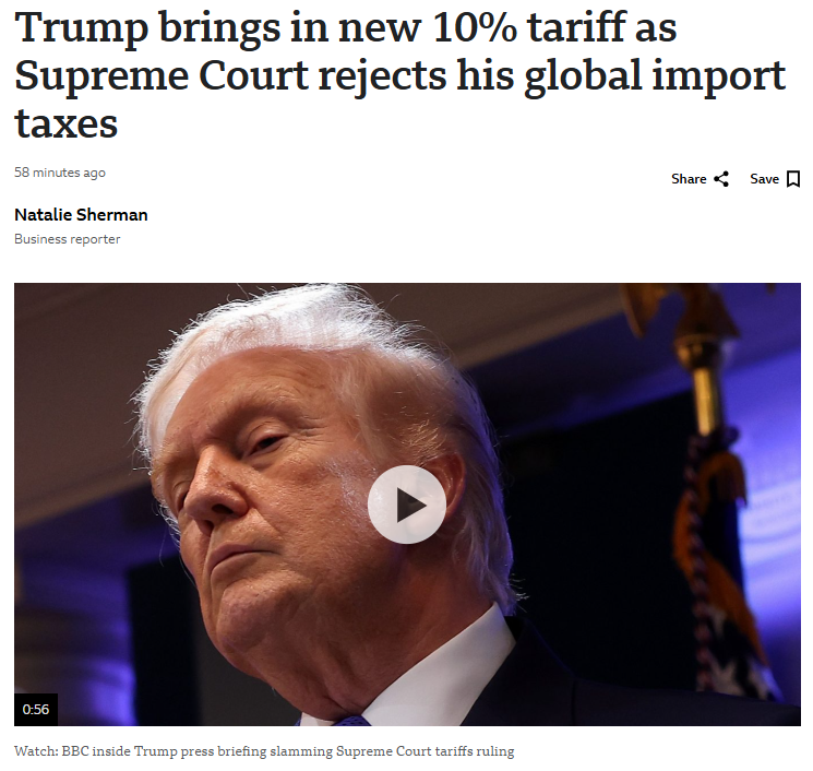 这个时候稳定人心最重要。果然,法院发布裁决后,特朗普很快就召开发布会,宣布将立即采取新行动,对全球商品征收10%的关税,并启动新的贸易调查。