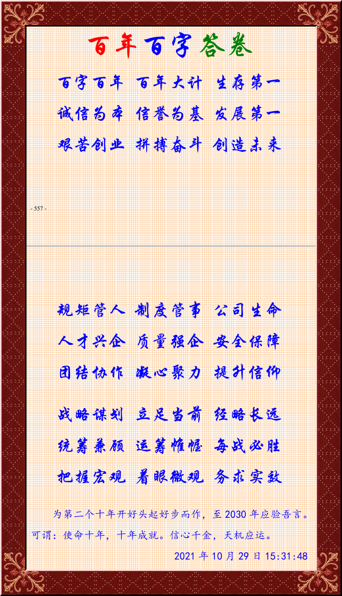 为第二个十年开好头起好步而作,至2030年应验吾言。可谓:使命十年,十年成就。信心千金,天机应运。