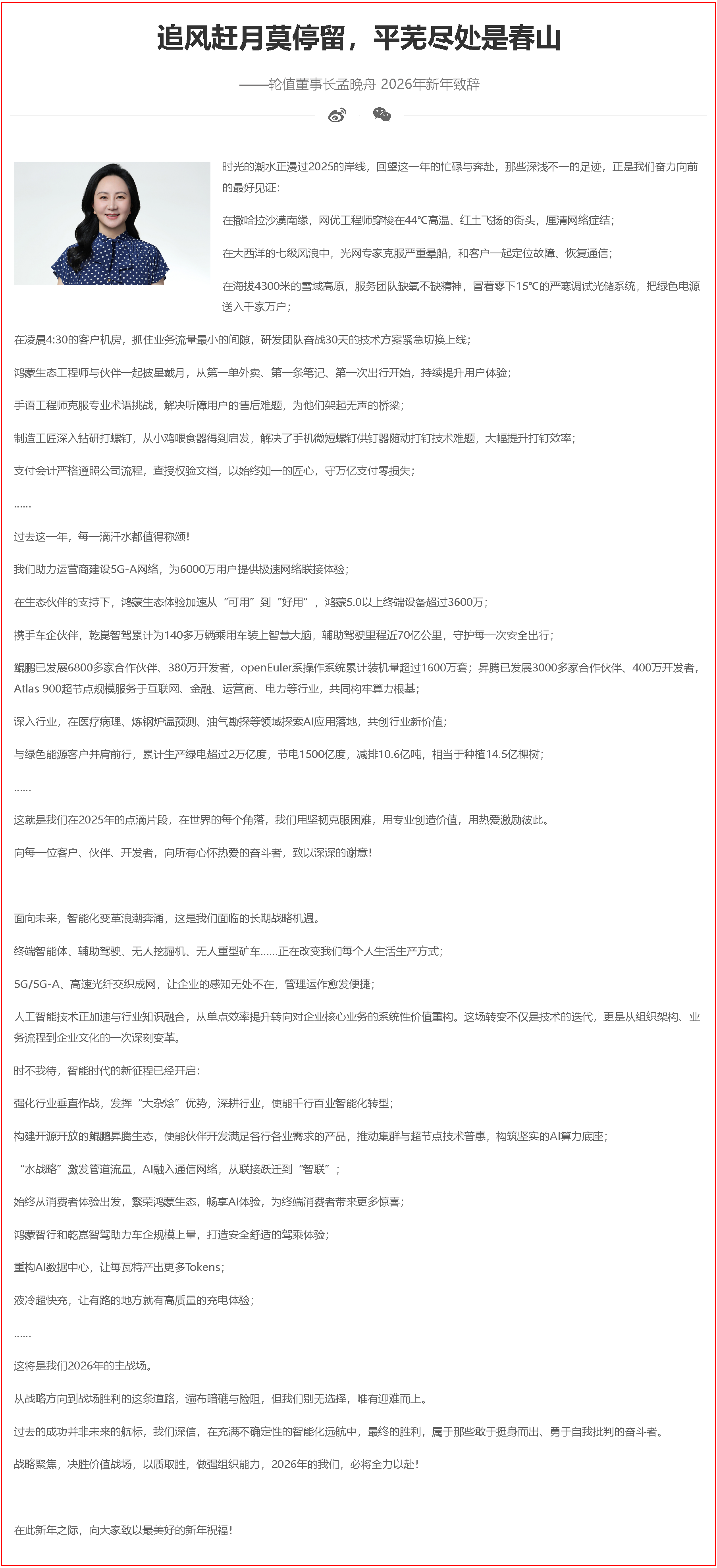 【行业动态】孟晚舟新年致辞:这些是华为2026年的主战场