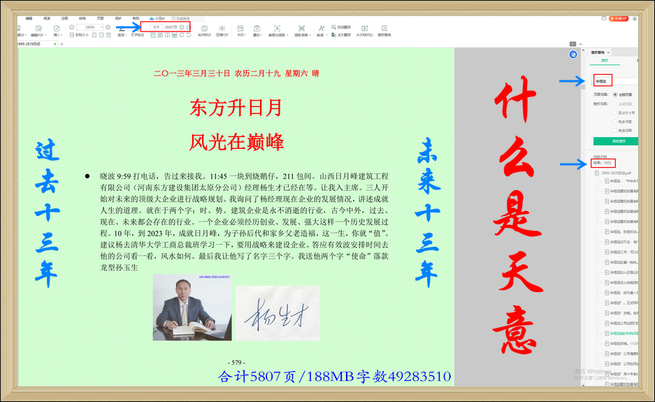 这本日记记录了我从协会到山西二建再到日月峰和华恒远的所有工作,其中日月峰记录1015处,最初是2012年8月19日晓波提起,2013年3月30日第一次涉足,揭开了长达十三年的“一企一策”民营企业发展战略理论与实践相结合的思考与感悟!
