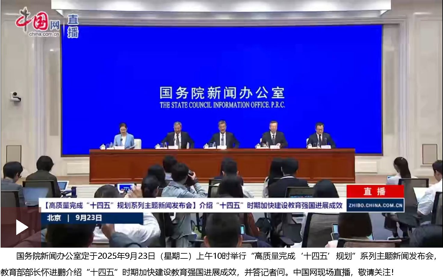 【高质量完成“十四五”规划系列主题新闻发布会】介绍“十四五”时期加快建设教育强国进展成效2025-09-23