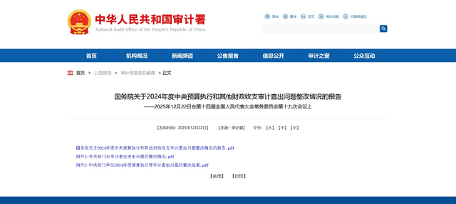 2025年12月22日,受国务院委托,审计署审计长侯凯向十四届全国人大常委会第十九次会议作了《国务院关于2024年度中央预算执行和其他财政收支审计查出问题整改情况的报告》(以下简称《审计整改报告》)。为进一步了解2024年度审计整改有关情况,记者采访了审计署政策研究室主要负责同志。