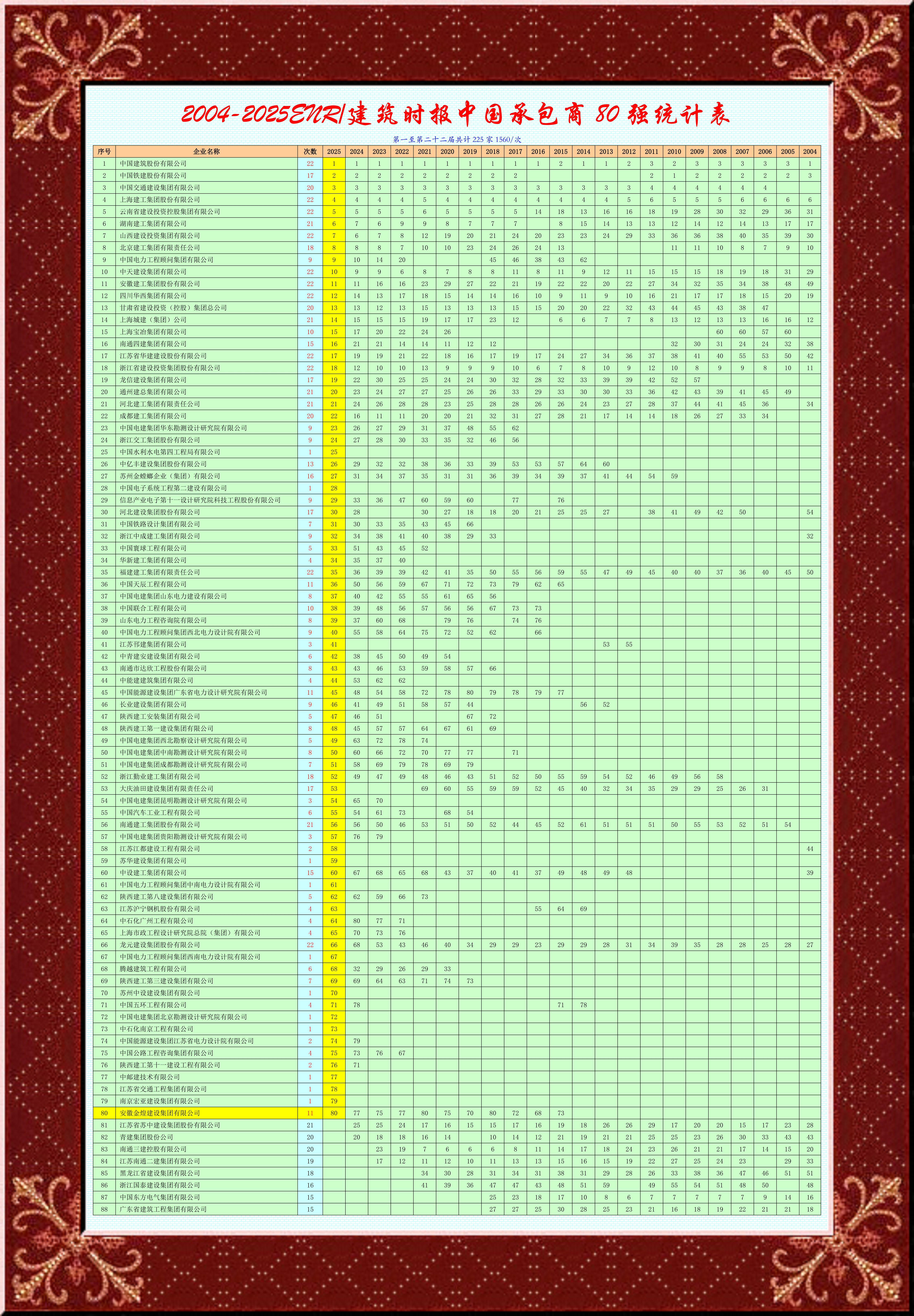 9月26日,美国《工程新闻记录》(ENR)与中国《建筑时报》联合发布2025年度“中国承包商80强”与“工程设计企业60强”榜单。山西建投凭借稳健的经营表现与全产业链服务能力,蝉联双榜,分别位列“中国承包商80强”第7位、“工程设计企业60强”第48位。