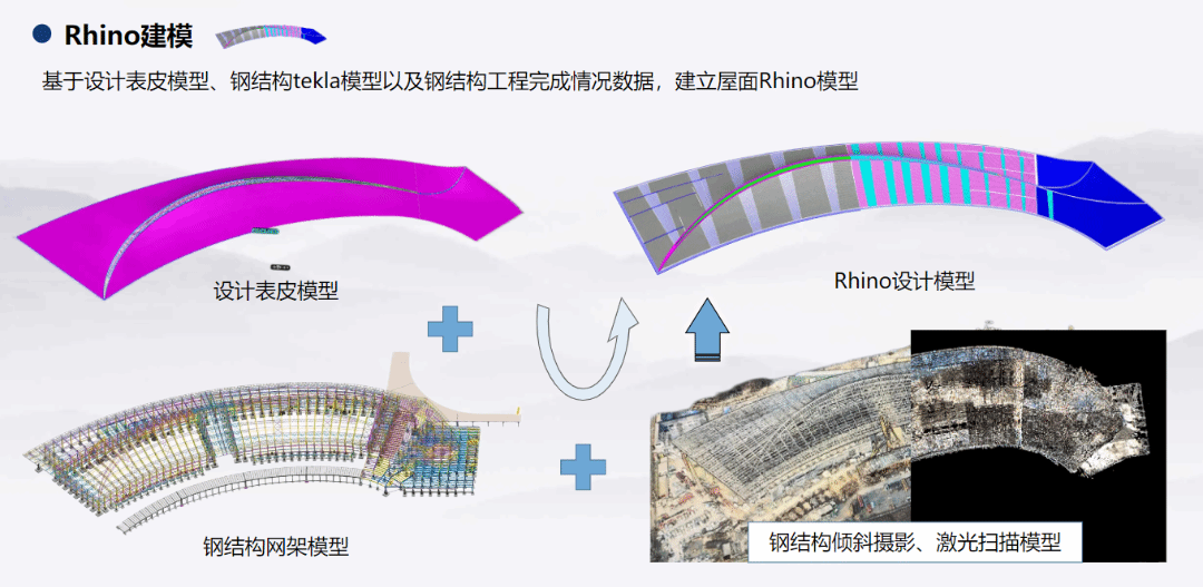 BIM与参数化结合攻克异形结构难题。面对山西潇河国际会展中心异形双曲金属屋面的超高难度挑战,项目团队展现了BIM技术在处理复杂几何形态与精准下料施工上的突破。其技术核心是将BIM理念与Rhino+Grasshopper参数化建模深度结合。通过激光扫描获取现场数据后,在BIM环境中进行碰撞检测与误差调整,并对屋面钢板进行曲率核验与板块优化,最终输出精准的加工和定位数据,将加工运输效率提升近40%,确保了复杂设计理念的完美落地。