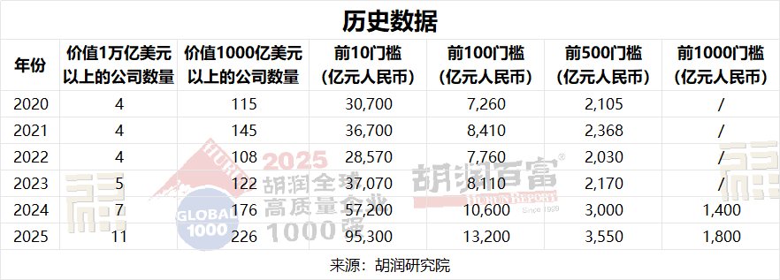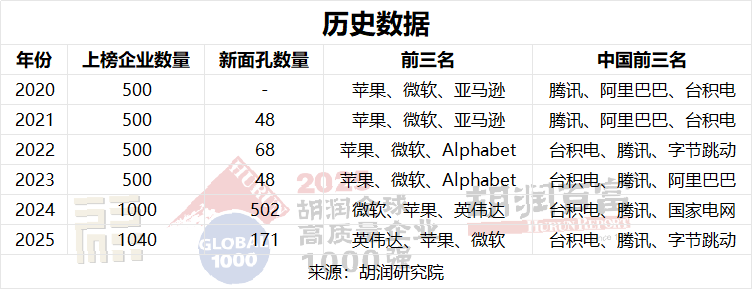 自2024年起,胡润研究院将全球最具价值公司榜单从500强扩展至1000强,并将国有企业纳入其中。