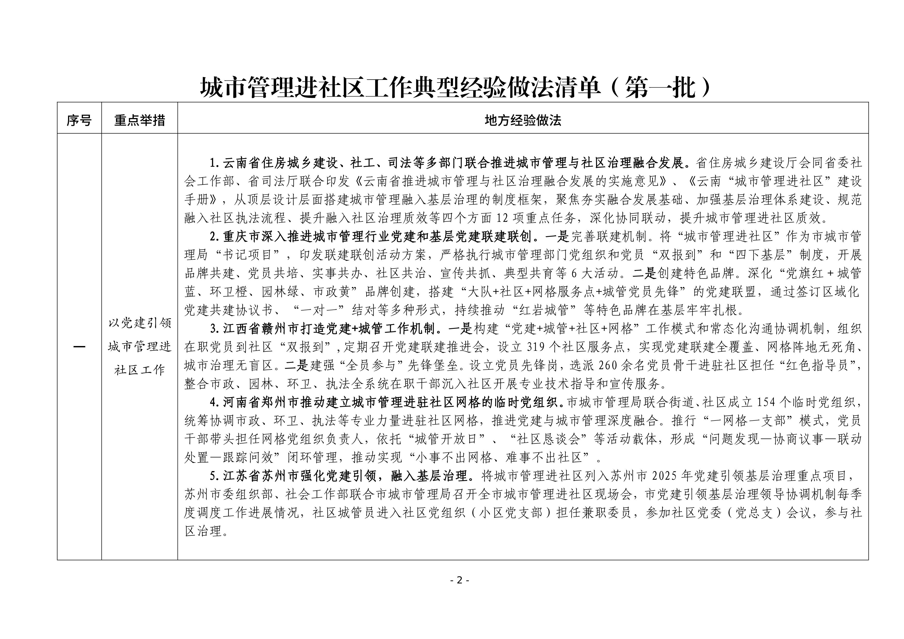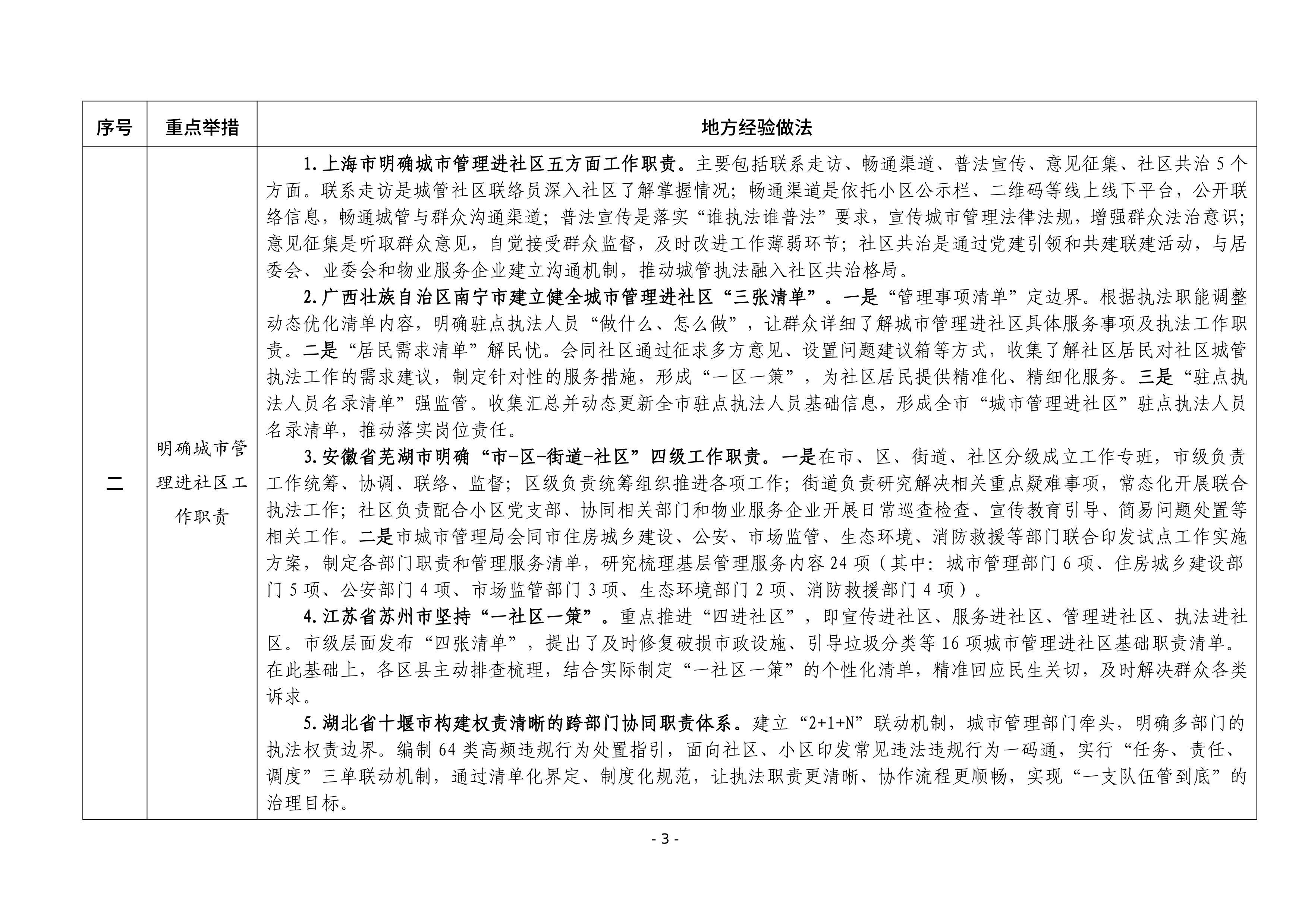 为贯彻落实中央城市工作会议精神和《中共中央、国务院关于推动城市高质量发展的意见》部署要求,进一步推动城市管理融入基层治理,住房城乡建设部总结各地开展城市管理进社区工作经验做法,形成《城市管理进社区工作典型经验做法清单(第一批)》,于日前印发。