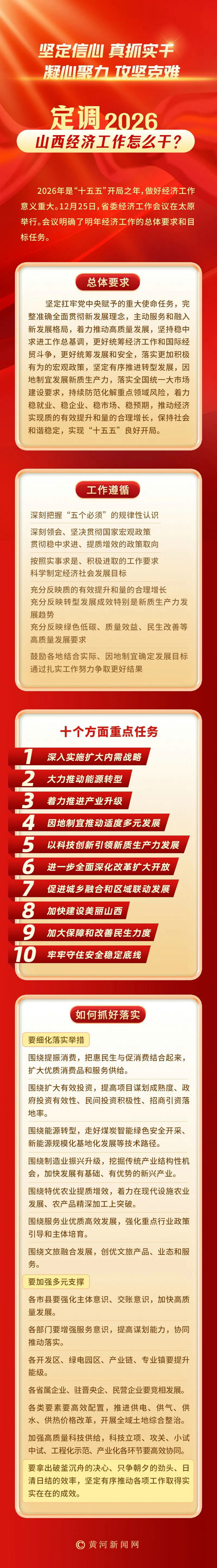 12月25日,省委经济工作会议在太原举行。会议指出,当前山西经济回升向好、转型发展提速的基本趋势没有改变,经济发展拥有诸多有利条件,正在加快转化为发展优势、竞争优势,将围绕十个方面重点任务做好明年经济工作。