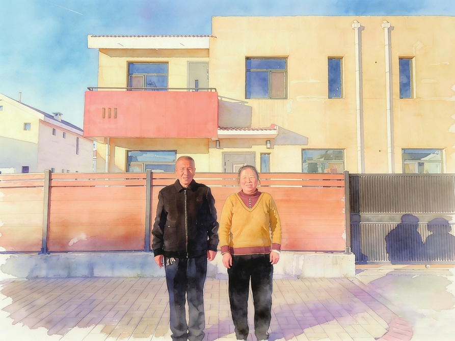 张保云(左)和老伴喜迁新居。本报记者高桦摄