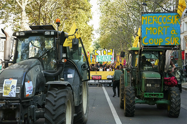 协议签署仪式将在当地时间12月20日举行,但在最后关头,这项协议依然面临欧盟内部的阻力。报道称,法国农民10月以来多次举行抗议示威,反对欧盟-南方共同市场自贸协定。法国农民担心,拉美农产品通过自贸协定进入欧洲市场,将冲击本地农业。