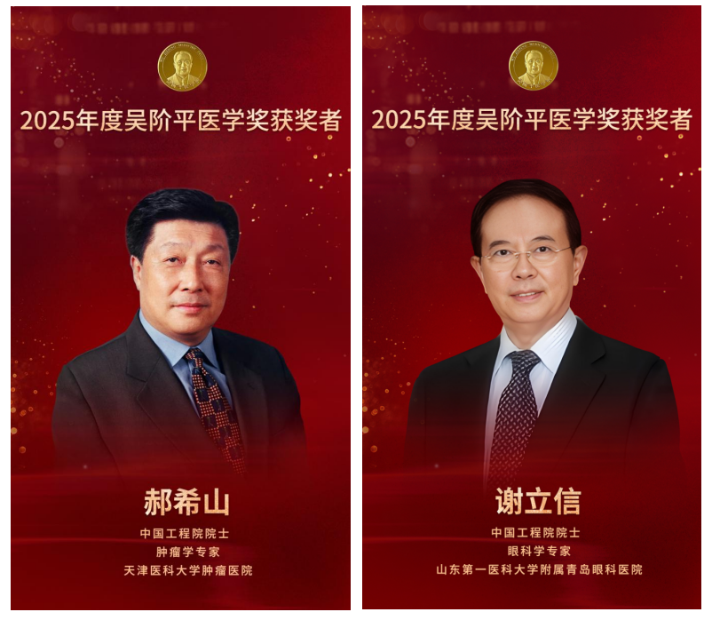 2025年度吴阶平医学奖授予中国工程院院士、肿瘤学专家郝希山教授,中国工程院院士、眼科学专家谢立信教授,以表彰他们在医学临床与科研工作中所取得的杰出成就。