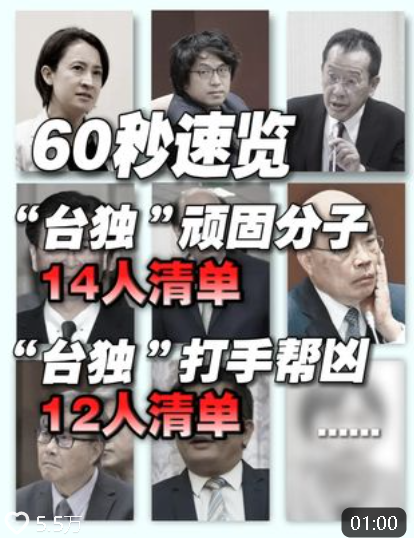 截至目前,国台办已公布“台独”顽固分子14人,“台独”打手帮凶12人。名单如下——