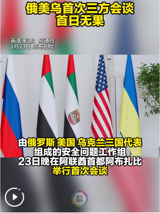 新华社北京1月24日电 俄罗斯、乌克兰和美国代表团组成的安全问题工作组23日在阿拉伯联合酋长国首都阿布扎比举行会谈,俄乌双方并未就领土这一中心议题显露妥协迹象。这是2022年2月乌克兰危机全面升级以来,俄乌美首次举行三方接触,会谈将持续至24日。
