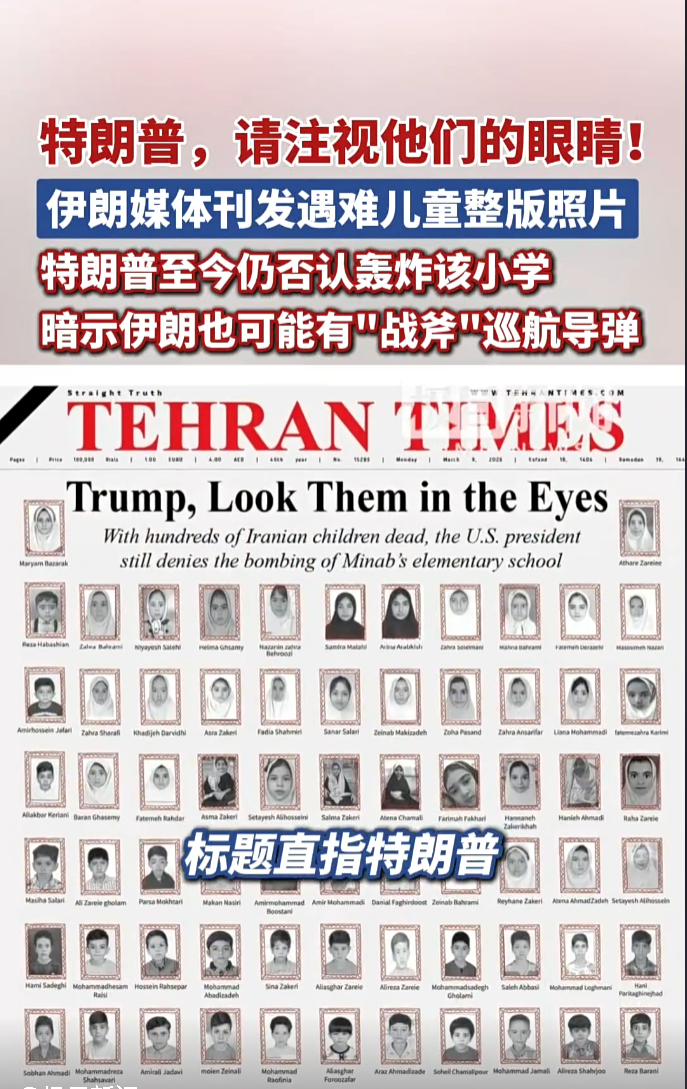 此外,伊朗教育部发布声明称,自美国和以色列对伊朗发起军事打击以来,伊朗已有237名学生和56名教育工作者在美以袭击中死亡,另有177名学生受伤。(央视新闻)
