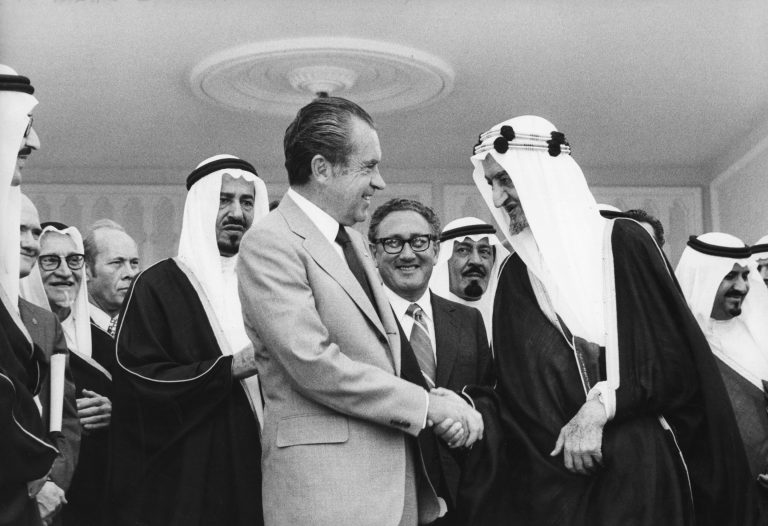 1974年,美国总统尼克松派国务卿基辛格前往沙特阿拉伯,敲定了一份秘密协议。此前三年,也就是1971年8月,尼克松在一次电视讲话中宣布将让美元与黄金脱钩,从而终结了二战以来支撑全球金融体系的布雷顿森林体系,一夜之间重塑了全球主要货币格局。到1973年,布雷顿森林体系已经彻底瓦解。