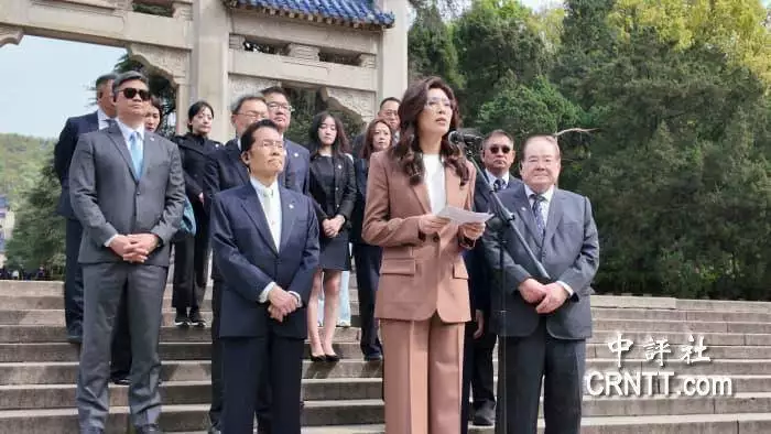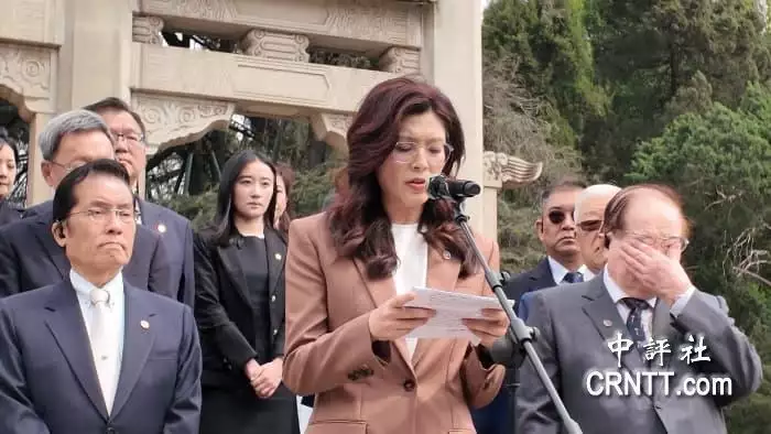 拜谒仪式结束后,郑丽文在中山陵博爱广场发表讲话情绪激动。期间,数度讲到动情处更带哭腔,但始终强忍住没哭出来,只见郑丽文将手插入口袋,短暂平复情绪后,继续讲话。