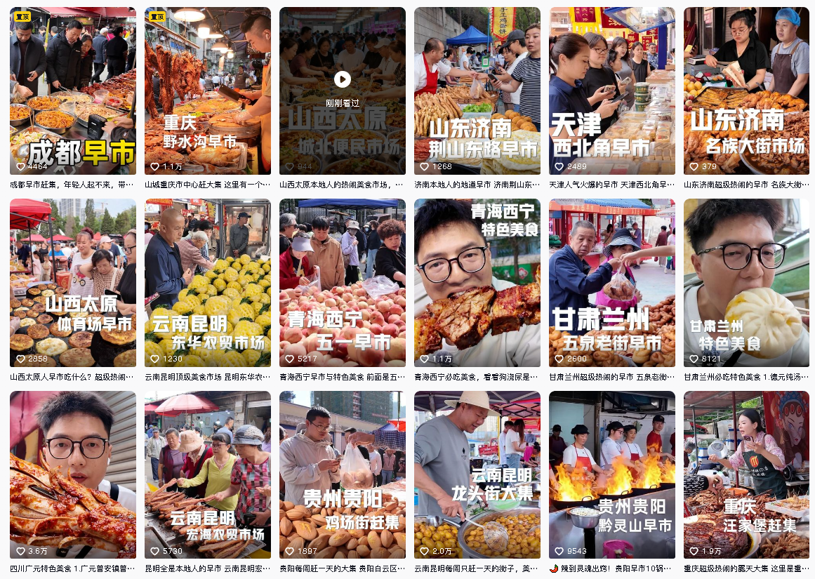 12. 成都早市赶集 成都菜市场的早晨总是热闹非凡,充满了生活的气息。天刚蒙蒙亮,菜市场就已经开始忙碌起来