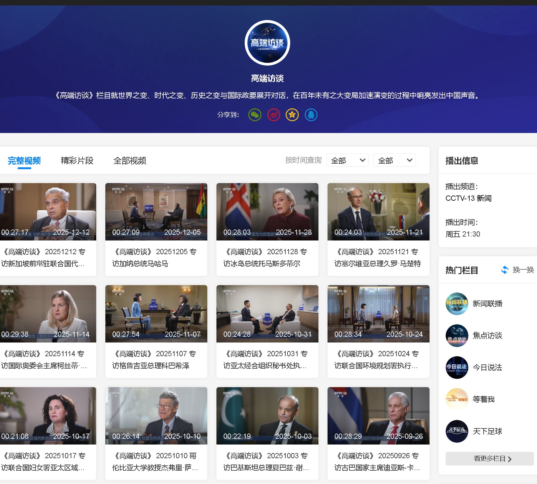 113 《高端访谈》 20250221 专访国际奥委会主席巴赫