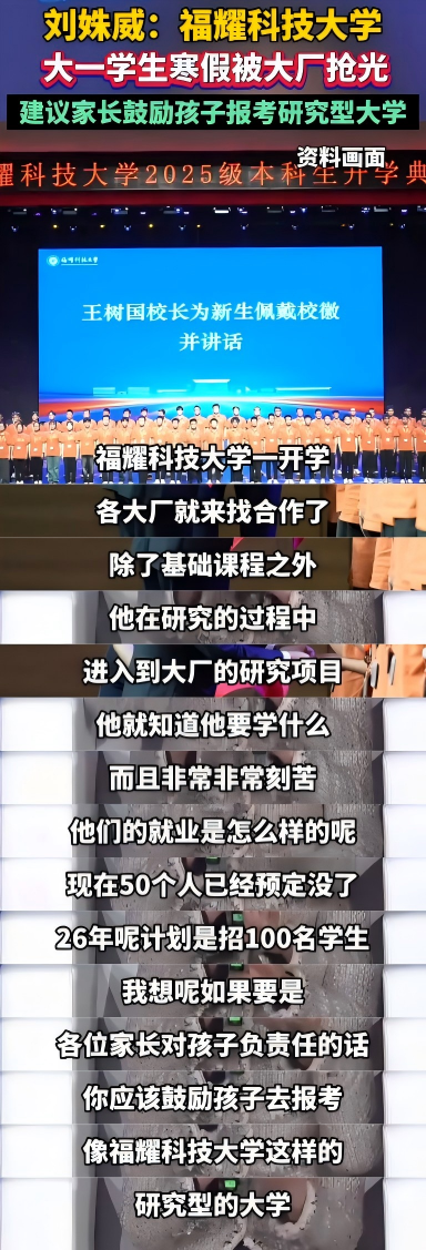 她表示,由于王树国校长和曹德旺先生的影响力,福耀科技大学一开学,各大厂就来找合作,所以现在大学的合作项目非常多,现在50个人已经全部被大厂预定。