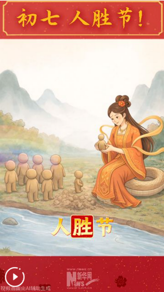 亦称“人胜节”、“人庆节”、“人口日”、“人七日”等。传说女娲初创世,在造出了鸡狗猪牛马等动物后,于第七天造出了人,所以这一天是人类的生日。汉朝开始有人日节俗,魏晋后开始重视。古代人日有戴“人胜”的习俗,人胜是一种头饰,从晋朝开始有剪彩为花、剪彩为人,或镂金箔为人来贴屏风,也戴在头发上。