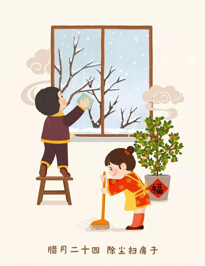 扫尘就是年终大扫除,北方称“扫房”,南方叫“掸尘”。家家户户都要打扫环境,清洗各种器具,拆洗被褥窗帘,洒扫六闾庭院,掸拂尘垢蛛网,疏浚明渠暗沟。