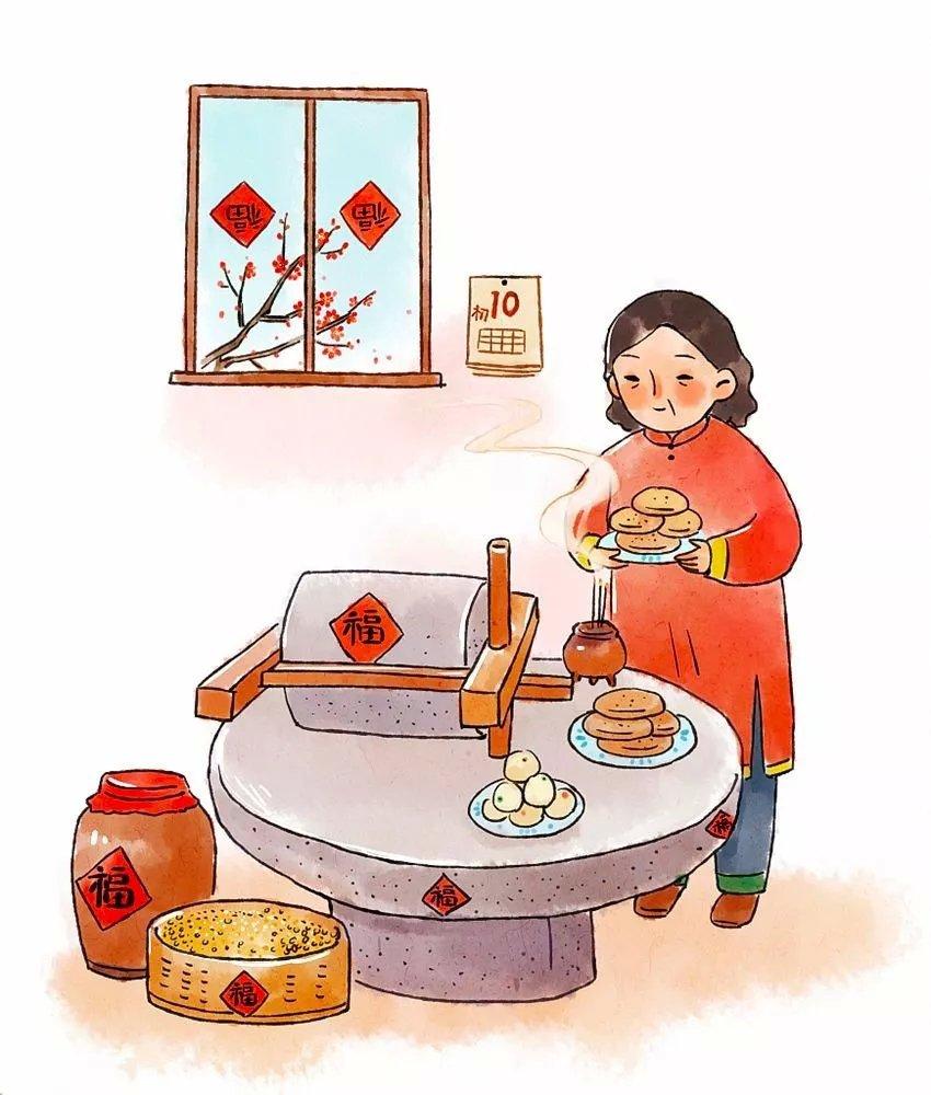 推磨做豆腐。传说玉帝会下界查访,吃豆腐渣以表清苦。明年会有好事情降临的。