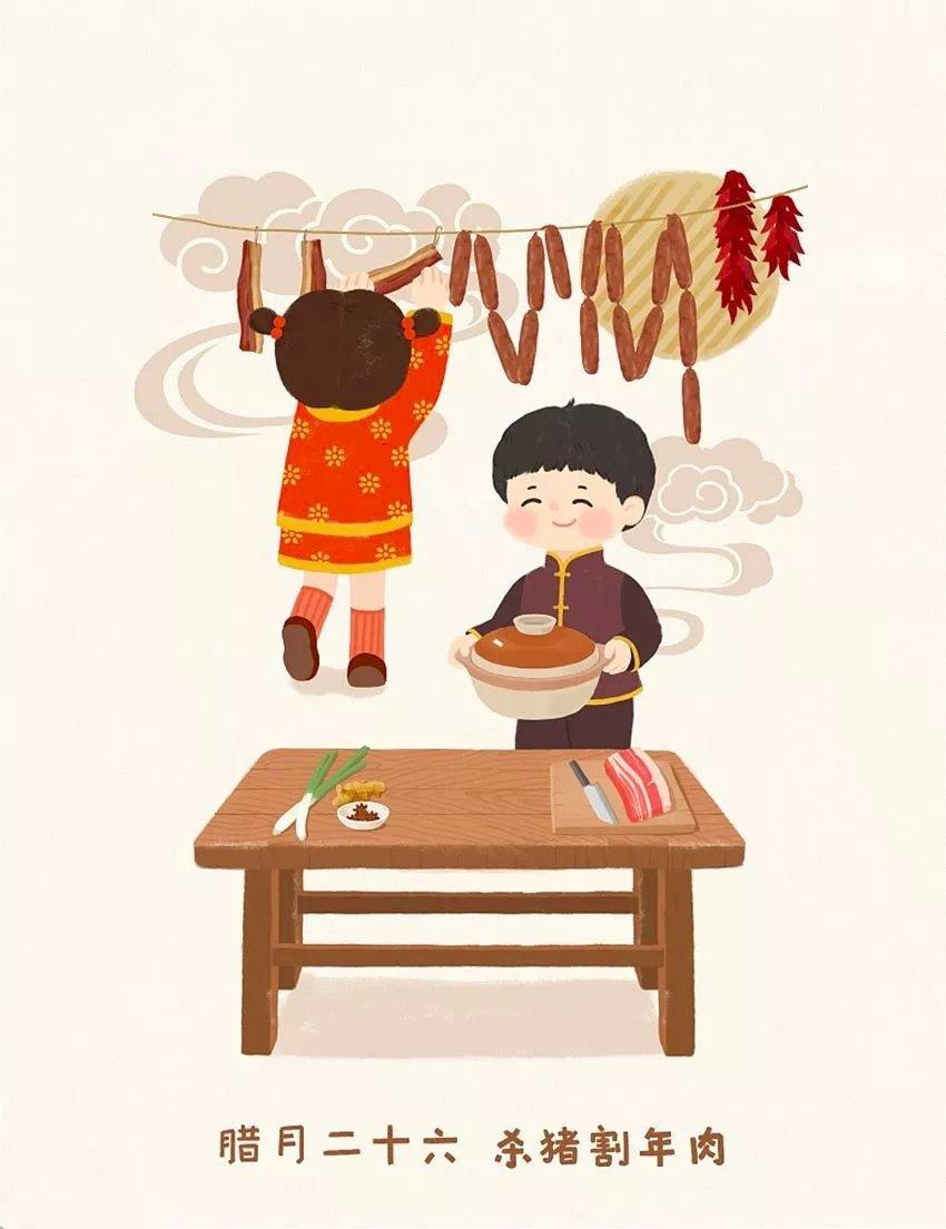 杀猪割年肉,穷苦人家只在一年一度的年节中才能吃到肉。也是办年货的开始。