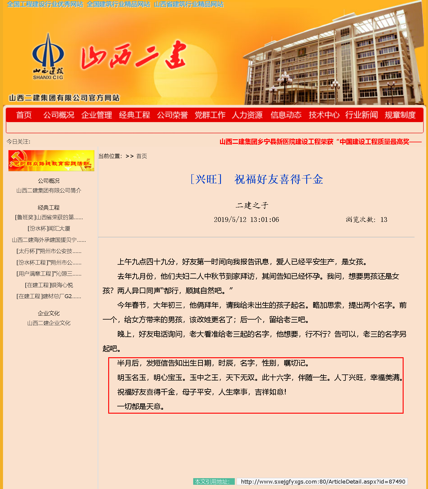 那天妻子从医院回来,谢天谢地,真灵验啊!生了一个男孩,他爷爷给起了名字,和你说的一字不差!我说这就是天意天机先知先觉!还有媛丰回门,我传递上天决定提前一天,那就是男孩,否则必然是女孩!