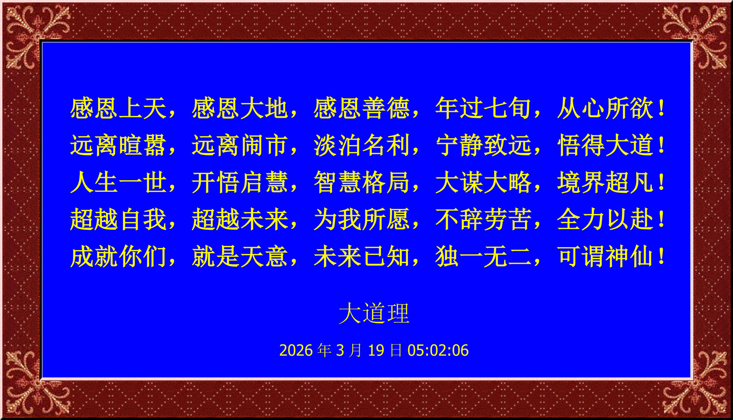 感恩上天,感恩大地,感恩善德,年过七旬,从心所欲!