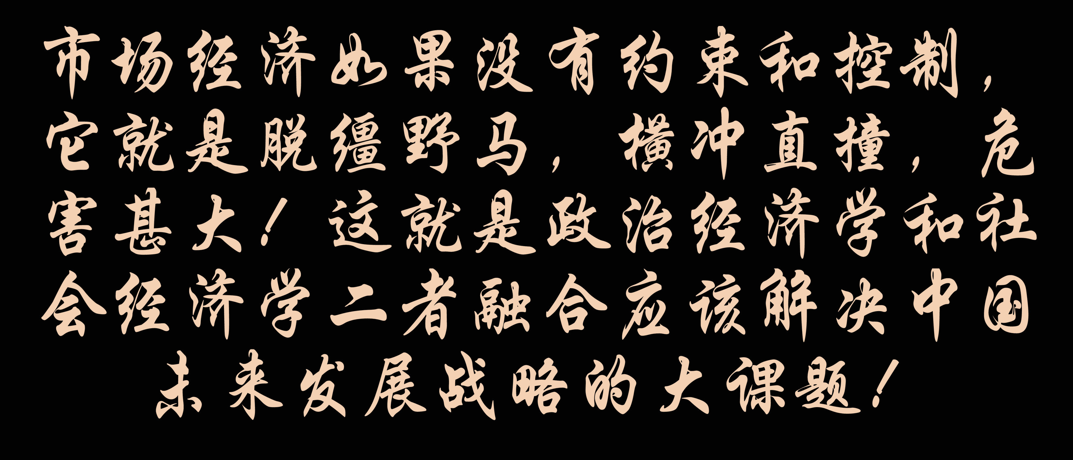市场经济如果没有约束和控制,它就是脱缰野马,横冲直撞,危害甚大!这就是政治经济学和社会经济学二者融合应该解决中国发展战略的大课题!